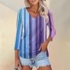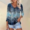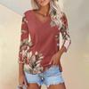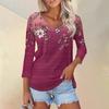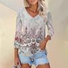 Женская футболка Футболка с принтом Рукав 3/4 Повседневные Выходные Мода Классический V-образный вырез Обычный Топ