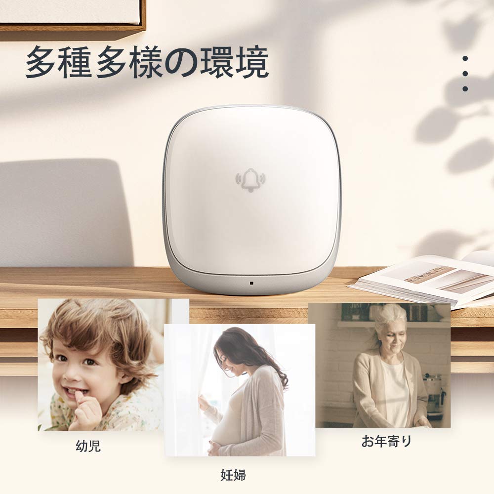[Простая установка] Беспроводной звонок устраняет необходимость в проводке. Нет никаких неудобств, связанных с заменой батареек, просто включите приемник дверного звонка в розетку, закрепите передатчик на дверной коробке. (можно приклеить двухсторонним скотчем), и нажмите кнопку, чтобы услышать звонок. Легко и удобно устанавливать. Его также могут использовать дети и пожилые люди.. Наш беспроводной звонок можно использовать дома, в ванной комнате, в учреждениях по уходу за больными, в ресторанах, а также в офисах и на складах.