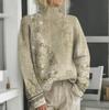 Женская мода повседневная с длинным рукавом и принтом, с высоким воротом, шерстяной трикотаж
