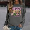 Женские футболки, свободные, модные и повседневные толстовки с круглым вырезом и длинными рукавами с рождественским принтом