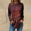 Футболки для женщин, осенние повседневные рубашки с длинными рукавами, толстовка с ретро-принтом, топ для рождественской вечеринки, пуловер