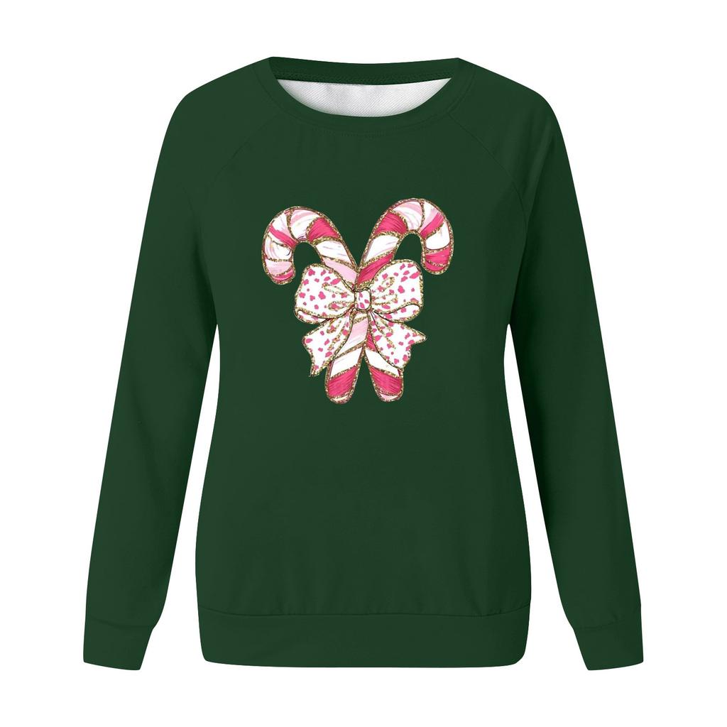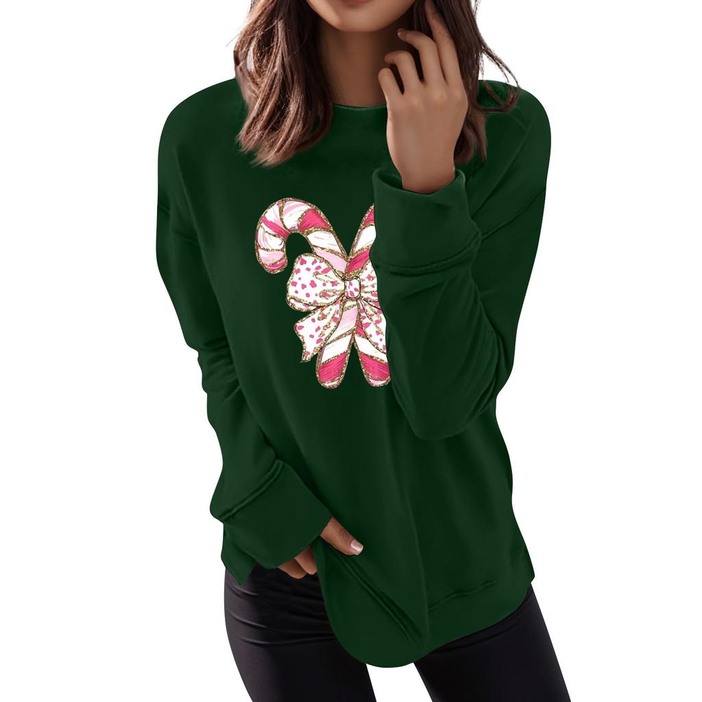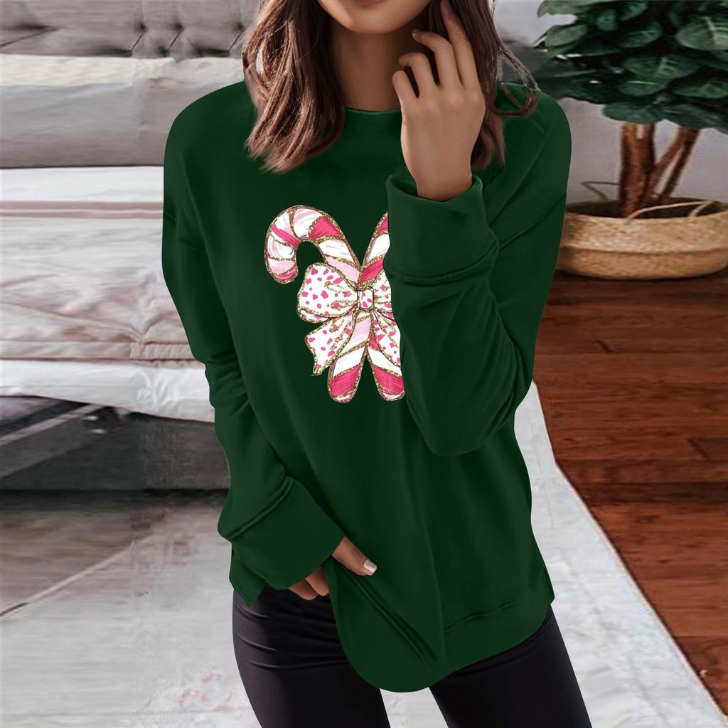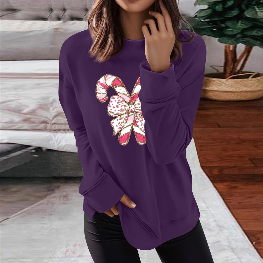 Женская мода повседневная рождественская бантовая печать круглый вырез длинный рукав топ