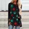 Женский модный свободный свитер средней длины с круглым вырезом и рождественским принтом, рукава реглан, повседневный топ с длинными рукавами