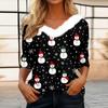 Женская футболка с рождественским принтом, флисовый воротник с рукавом три четверти и V-образным вырезом на рождественской вечеринке