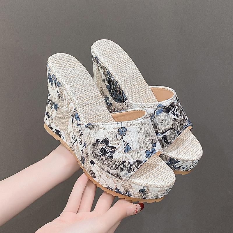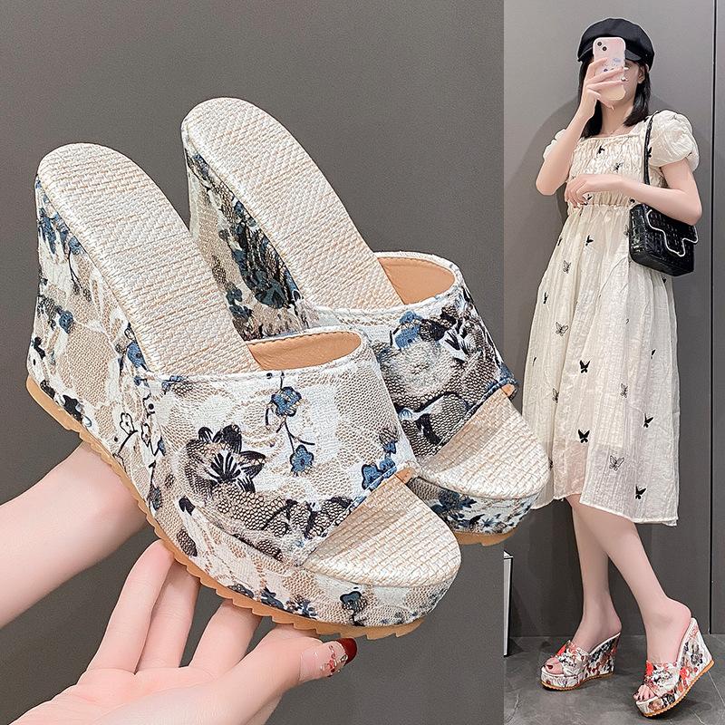 Туфли на танкетке и платформе с высоким каблуком, женские, 2024, новые водонепроницаемые босоножки с принтом «рыбий рот», большие размеры 40-42, женская обувь