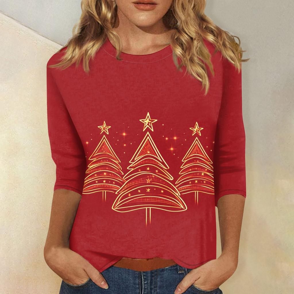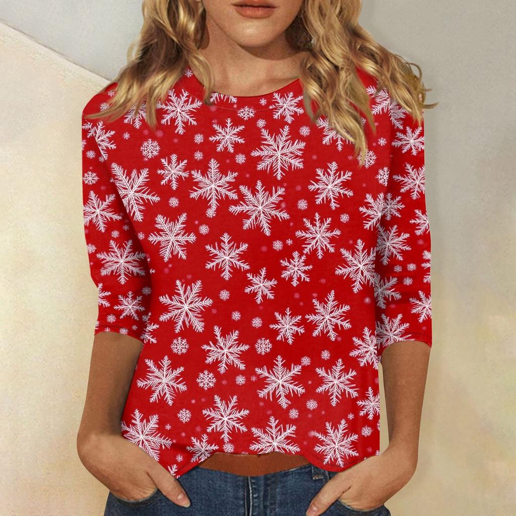 Женский топ с круглым вырезом и рукавом 3/4 с рождественским принтом