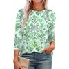 Женская модная повседневная футболка с круглым вырезом и рукавом семь четвертей в стиле ретро с принтом, плиссированная футболка