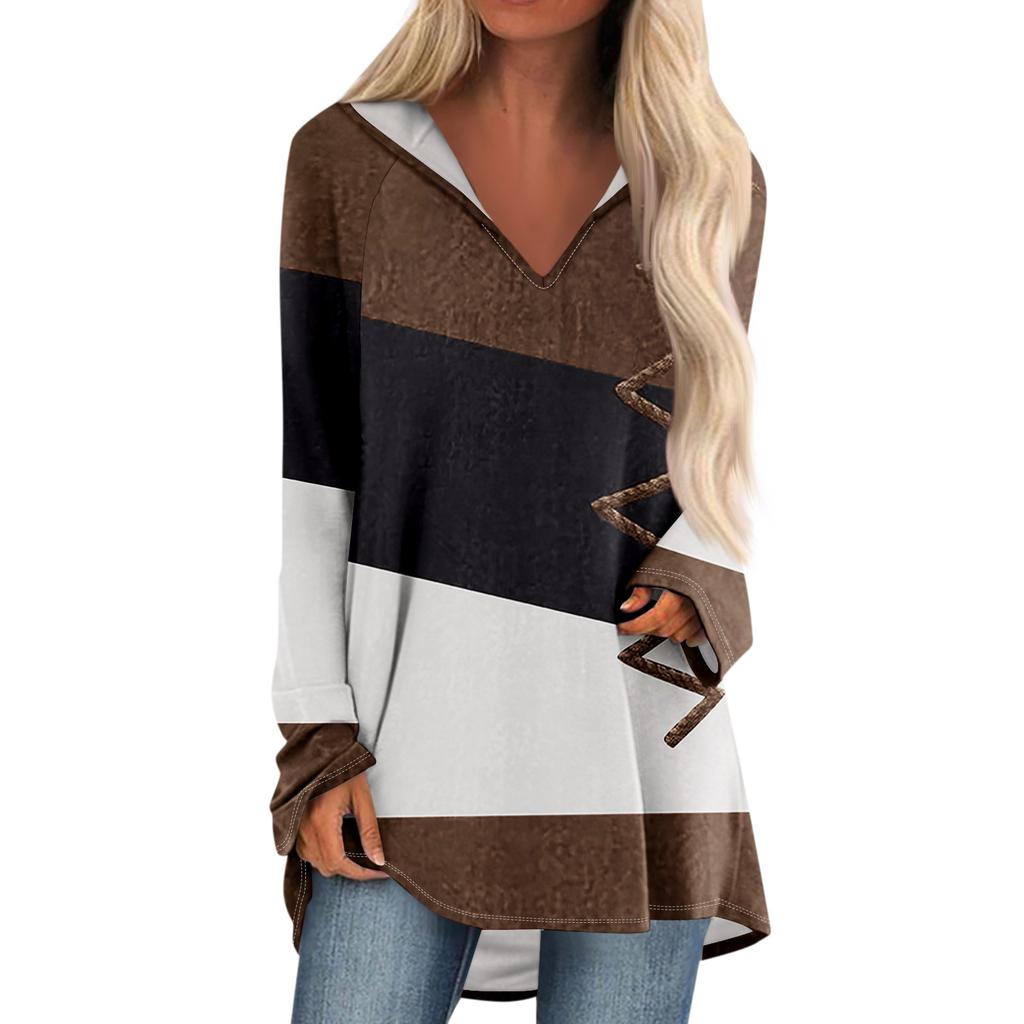 Женские свободные топы с V-образным вырезом и капюшоном с длинными рукавами, повседневные топы, домашние пижамы для отдыха, топы