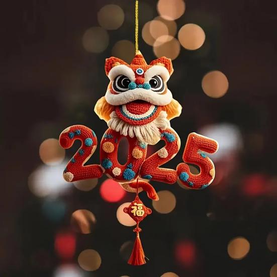 Праздничный узор «Лев»: Украсьте свое пространство этой акриловой подвеской с очаровательным узором в виде льва, добавив в любую обстановку нотку китайского Нового года.