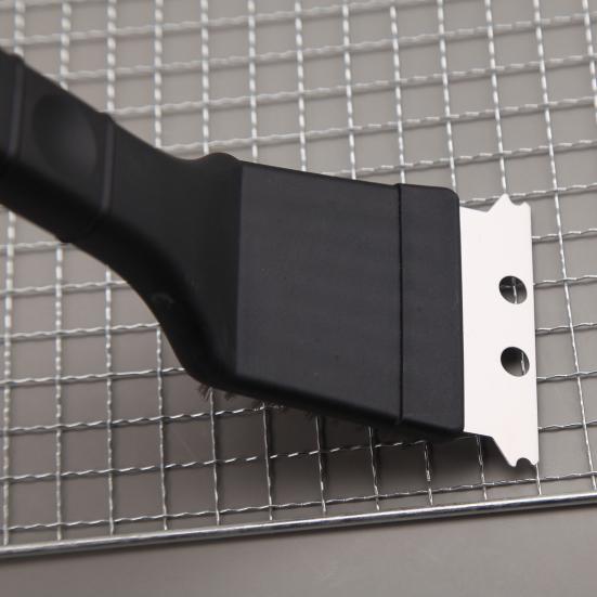Инновационная конструкция оснащена отверстием для подвешивания на ручке для удобного хранения.. Его двойная функция — щетка и лопатка — делает его практичным помощником при приготовлении пищи на гриле, идеально подходящим для легкого удаления пыли, жира и ржавчины..