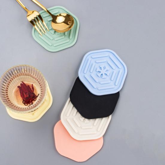 Защитите свои поверхности с помощью этих стильных и функциональных подставок.. Изготовленные из гибкого силикона, они легко чистятся и пригодны для повторного использования.. Шестиугольный цветочный узор добавит элегантности любому пространству..