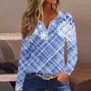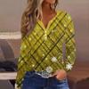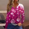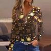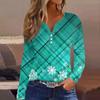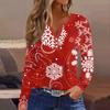Женская футболка с прямыми плечами и рождественским принтом, длинными рукавами, прямыми плечами и V-образным вырезом на пуговицах