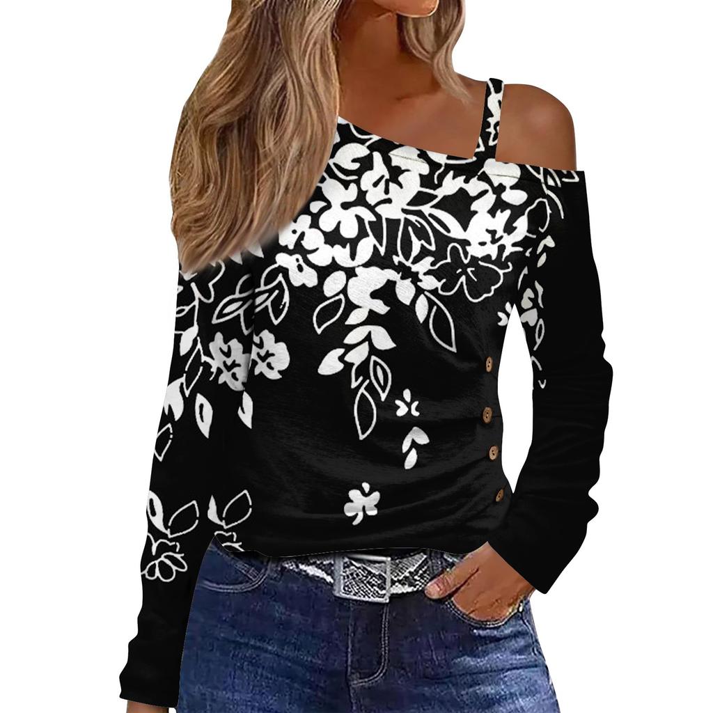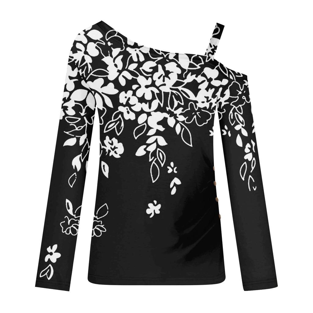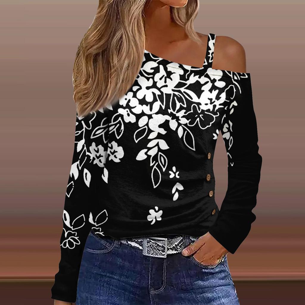 Классический дизайн:открытые плечи, длинный рукав, печать. Рубашка с длинными рукавами, свободного кроя, стильная для весны/осени/зимы.