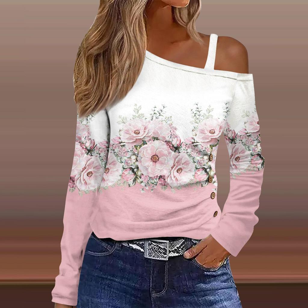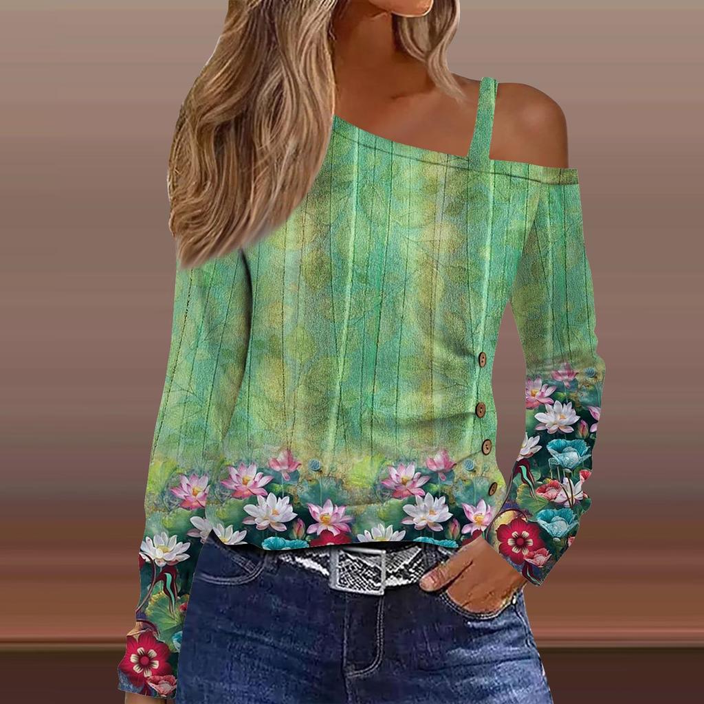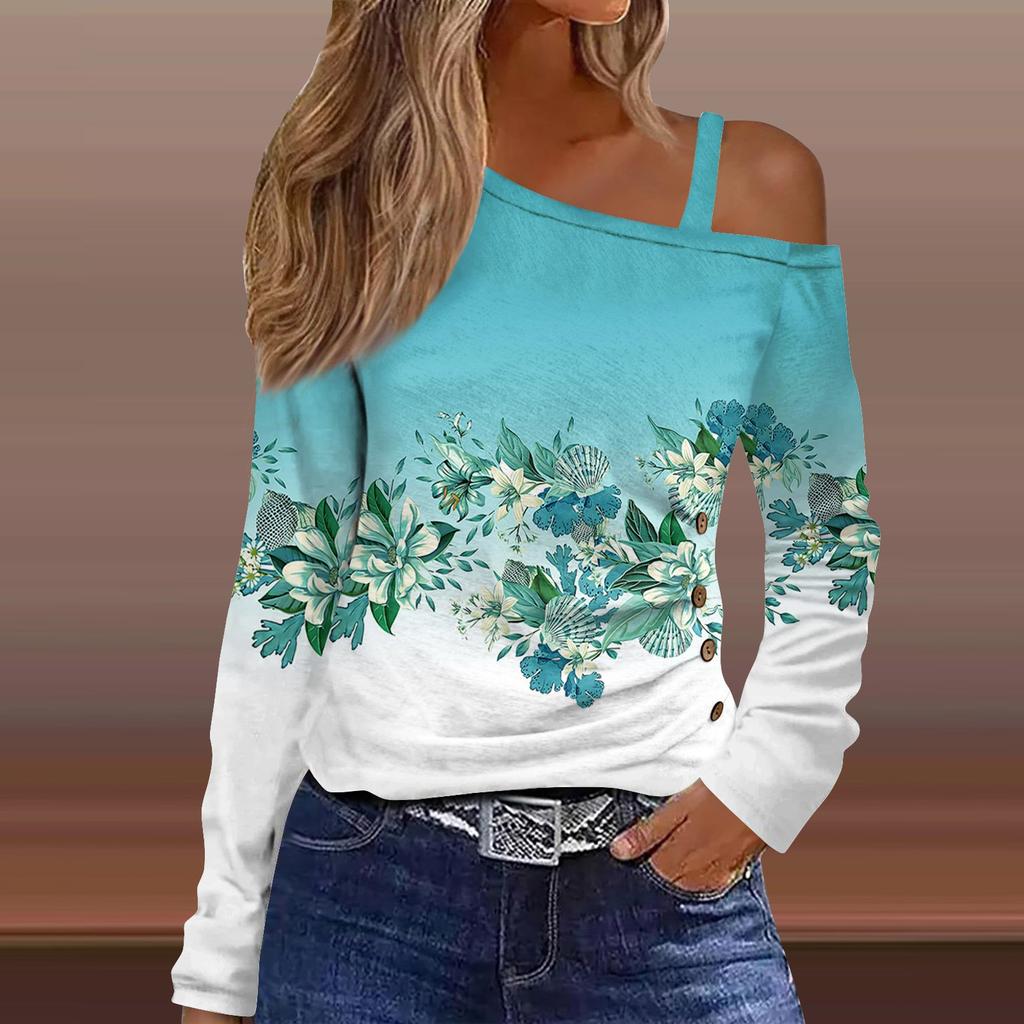 Классический дизайн:открытые плечи, длинный рукав, печать. Рубашка с длинными рукавами, свободного кроя, стильная для весны/осени/зимы.
