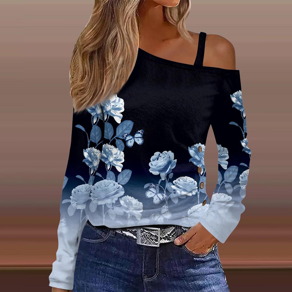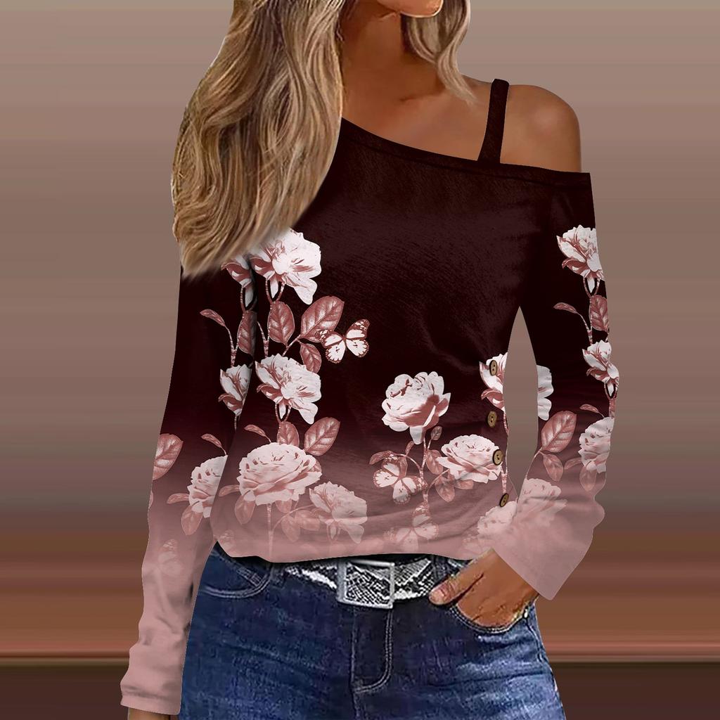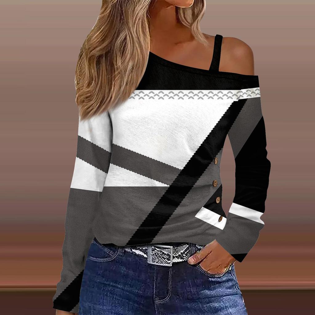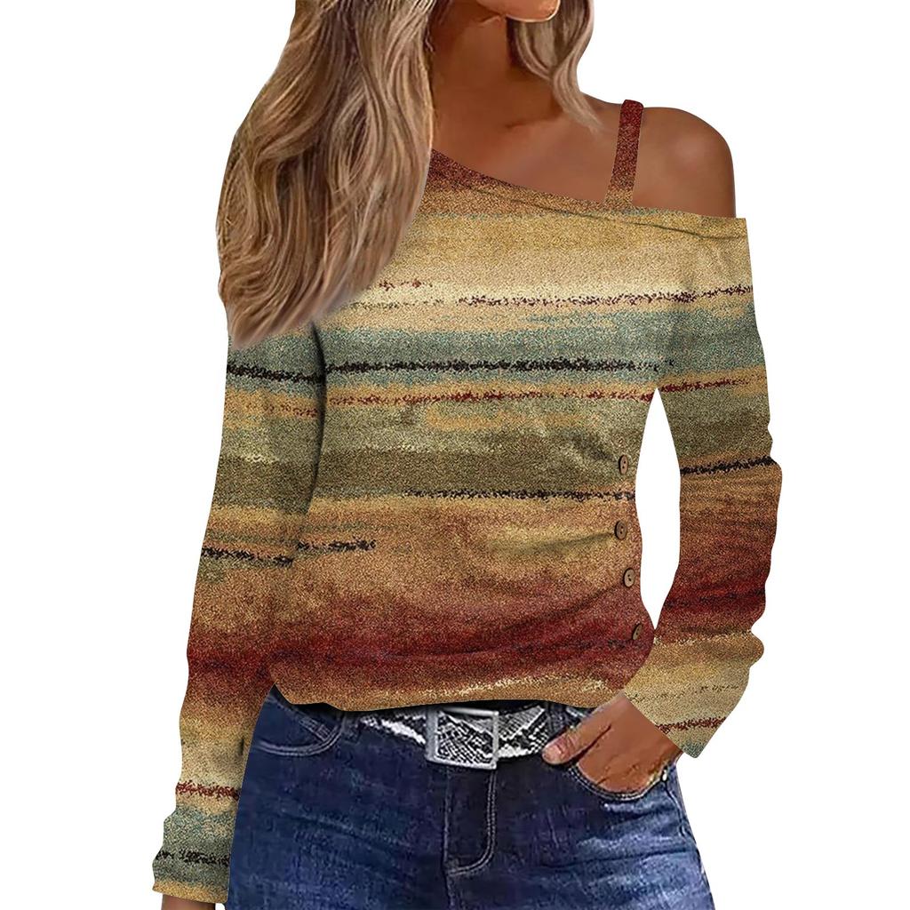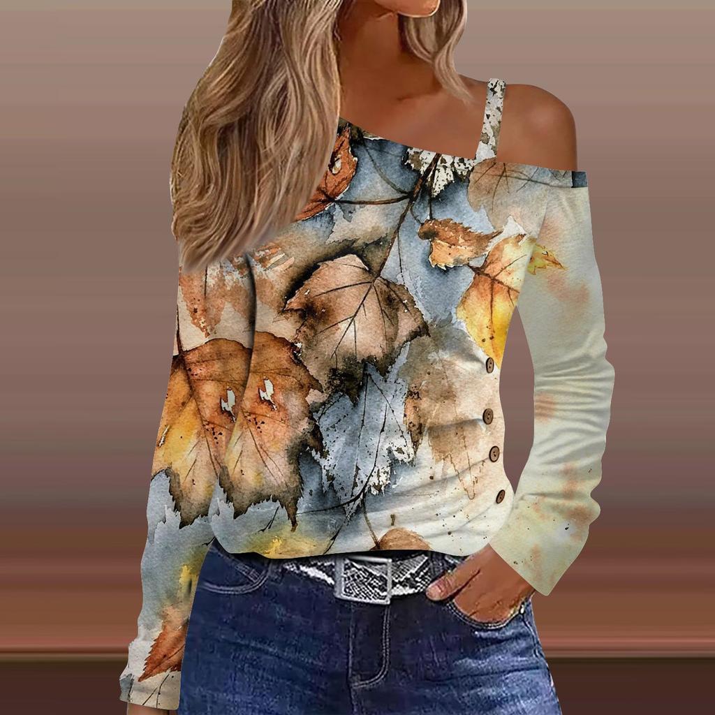 Классический дизайн:открытые плечи, длинный рукав, печать. Рубашка с длинными рукавами, свободного кроя, стильная для весны/осени/зимы.
