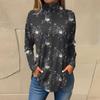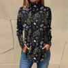 Женская свободная футболка с высоким воротом и длинными рукавами с цветочным принтом в стиле ретро, топ-пуловер