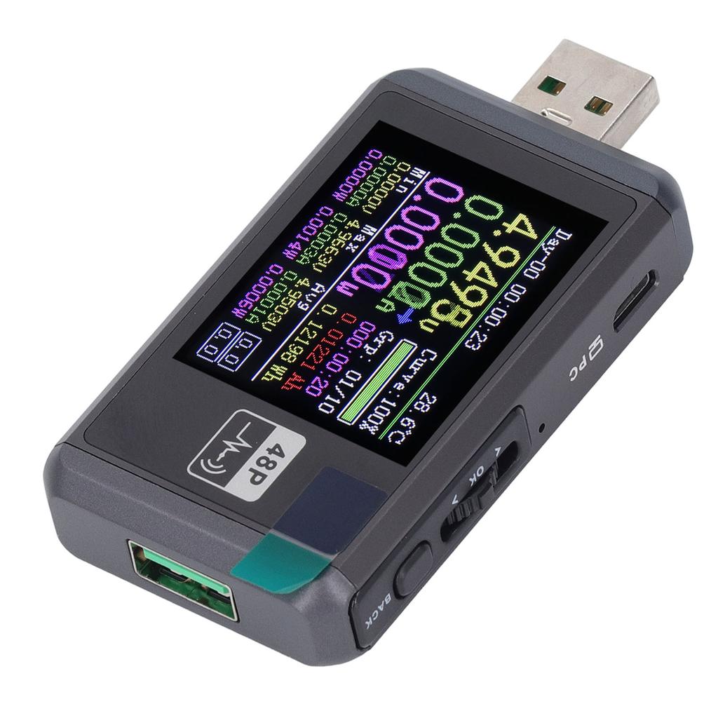 1. USB-мультиметр: Оснащен 1,77-дюймовым полноцветным широкоугольным TFT-дисплеем с ЖК-дисплеем, интегрированным с интерфейсами USB A, Micro USB и Type C.. Это детектор напряжения и тока с высокой надежностью и безопасностью, а также триггер быстрой зарядки для мобильных коммуникационных терминалов.. Датчик силы тяжести автоматически переключает направление отображения.