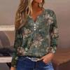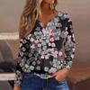 Женская модная повседневная футболка с v-образным вырезом и длинным рукавом с цветочным принтом, украшенная топами