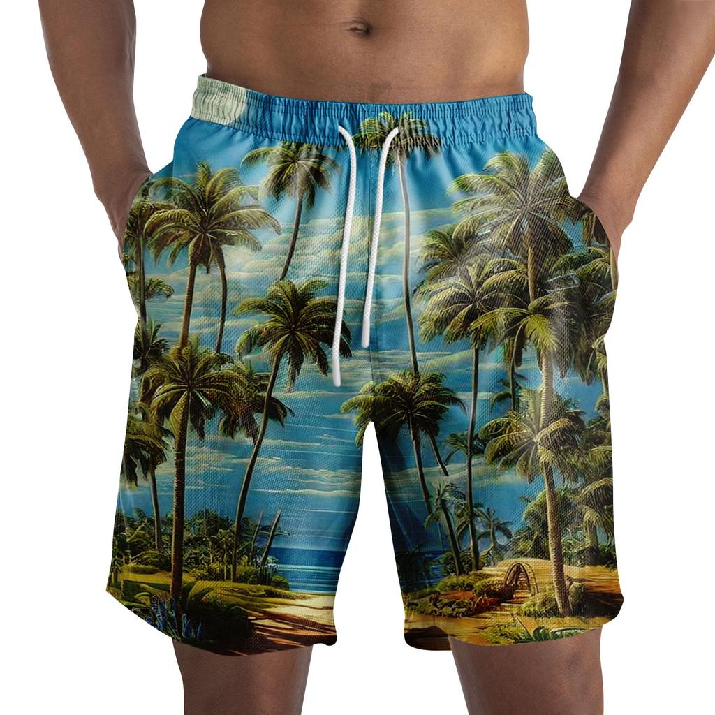 Мужские модные гавайские пляжные спортивные повседневные шорты с принтом и ремешками, брюки