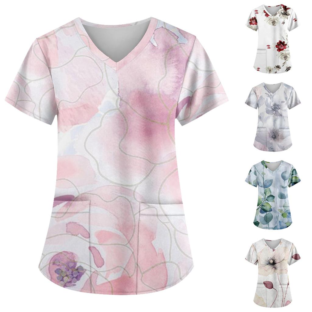 Женский модный топ с v-образным вырезом и коротким рукавом с карманом и коротким рукавом для ухода за ребенком