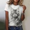 Женская футболка с принтом кота, повседневная футболка с коротким рукавом и 3D-принтом, модная уличная одежда, свитер с круглым вырезом, летняя женская свободная одежда
