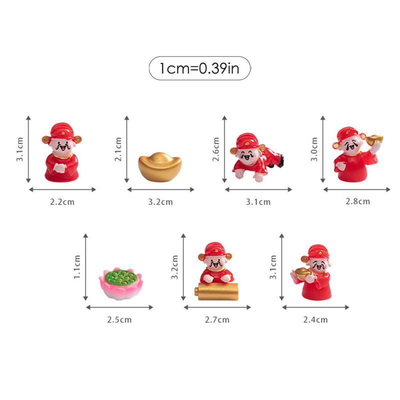 7 шт./компл. год удачи украшения мультфильм мини бог богатства статуэтки микро ландшафт украшения настольное украшение