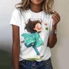 Женская футболка с рисунком аниме-девушки, летний повседневный свитер с коротким рукавом, модная уличная одежда, милая женская футболка для девочек