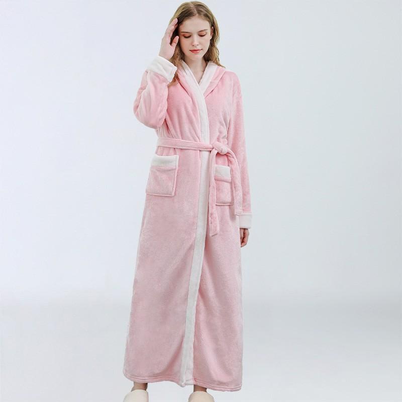 Осенне-зимний женский мягкий банный халат, новый из фланели, длинная плотная ночная рубашка, домашняя одежда больших размеров, удобная пижама, теплая одежда для сна