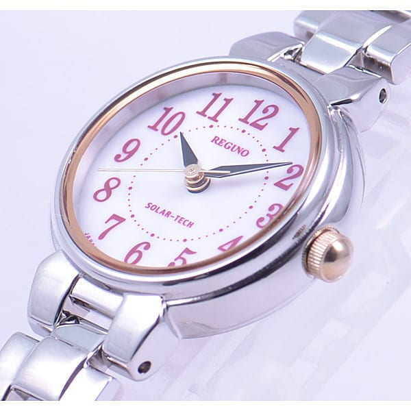 Citizen Женщины KP1-012-13 ( Часы REGUNO Solar-Tech Браслет женский) Круглые часы из серебристого нержавеющего металла