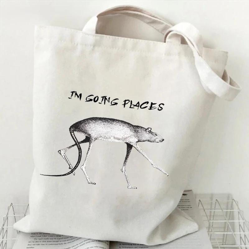 Сумки для продуктов Эко-сумка для многоразового использования с изображением мультяшных животных-крыс Сумки-шопперы Повседневная мода Горячая распродажа Женские сумки для покупок