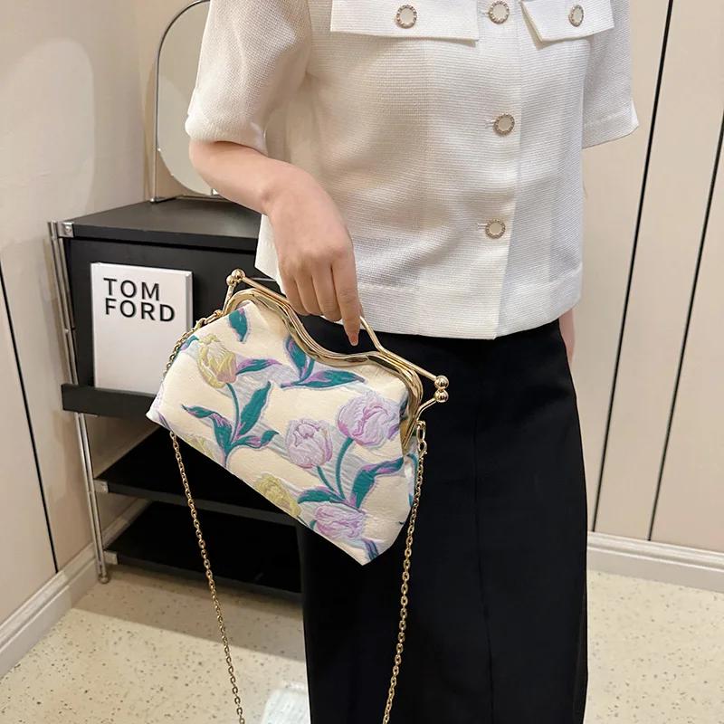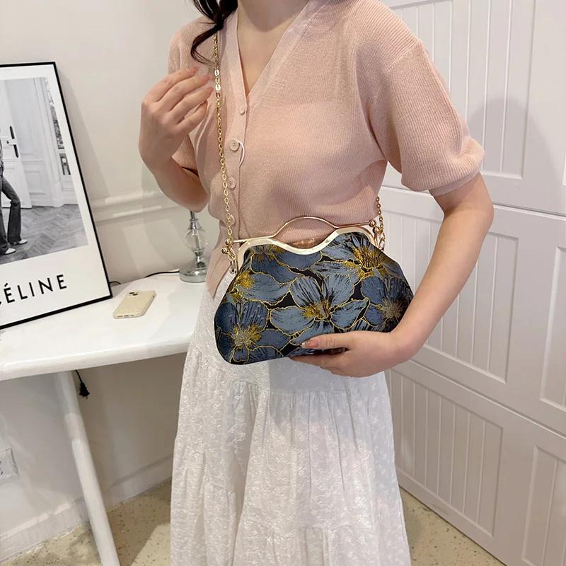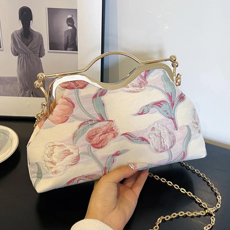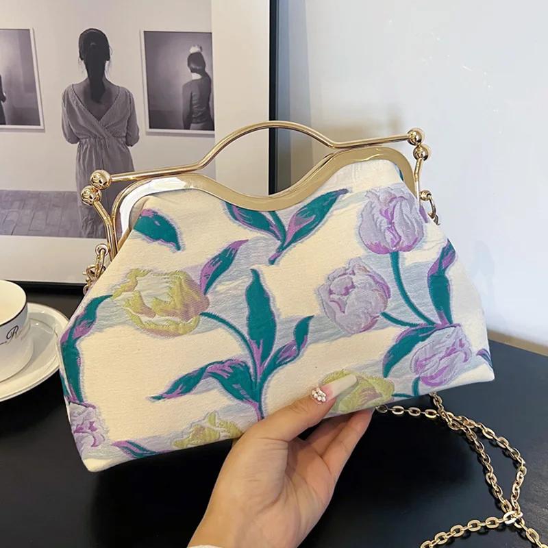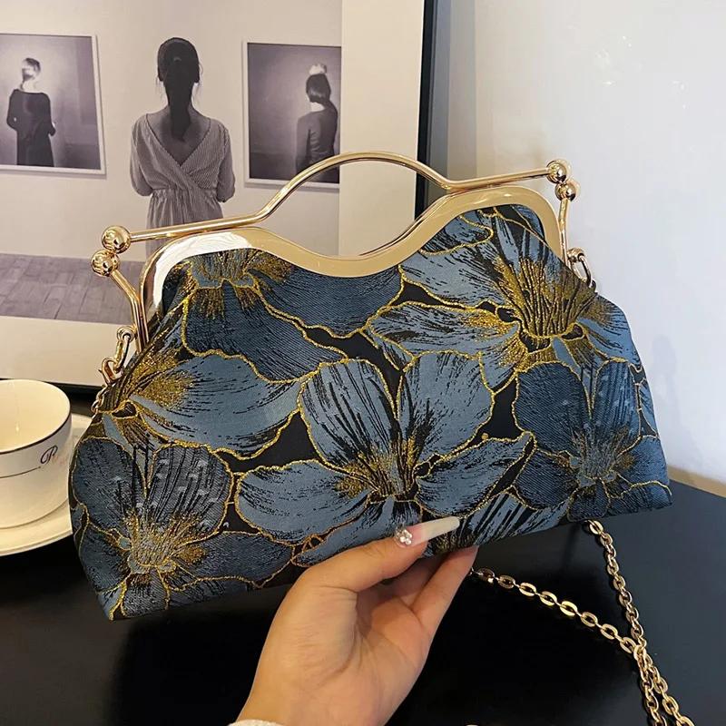 Холщовый клатч для ужина для женщин с замком-защелкой, зажимом для ракушки, вечерние выпускные сумки, роскошные женские вышитые цветочные сумки-мессенджеры, элегантные