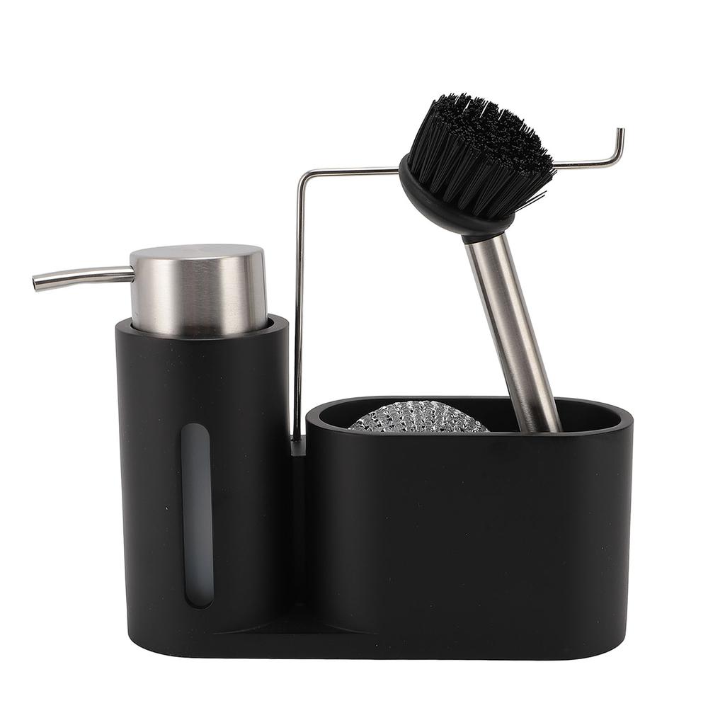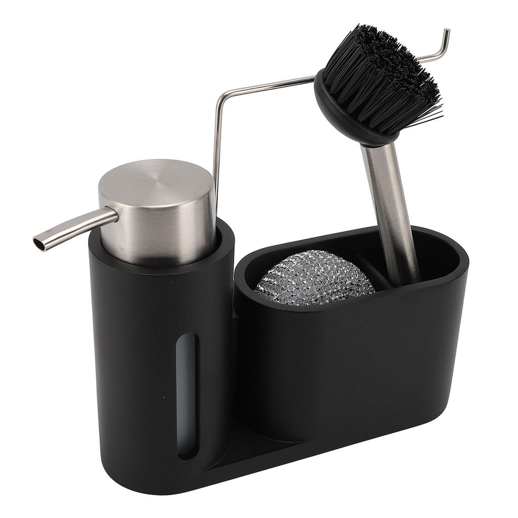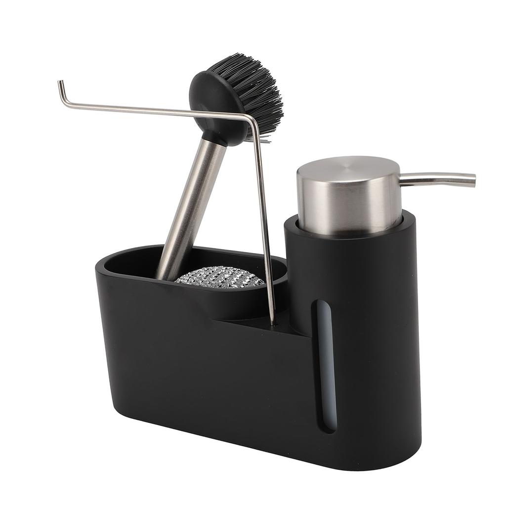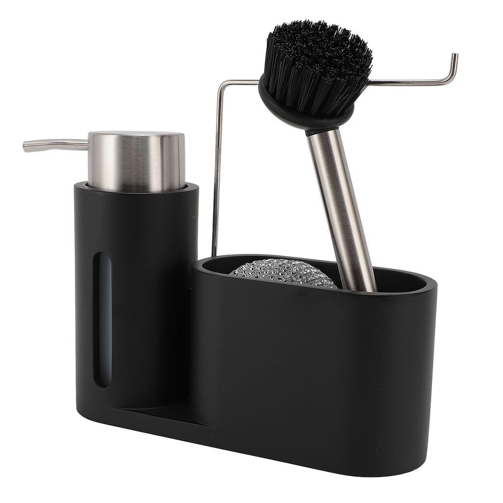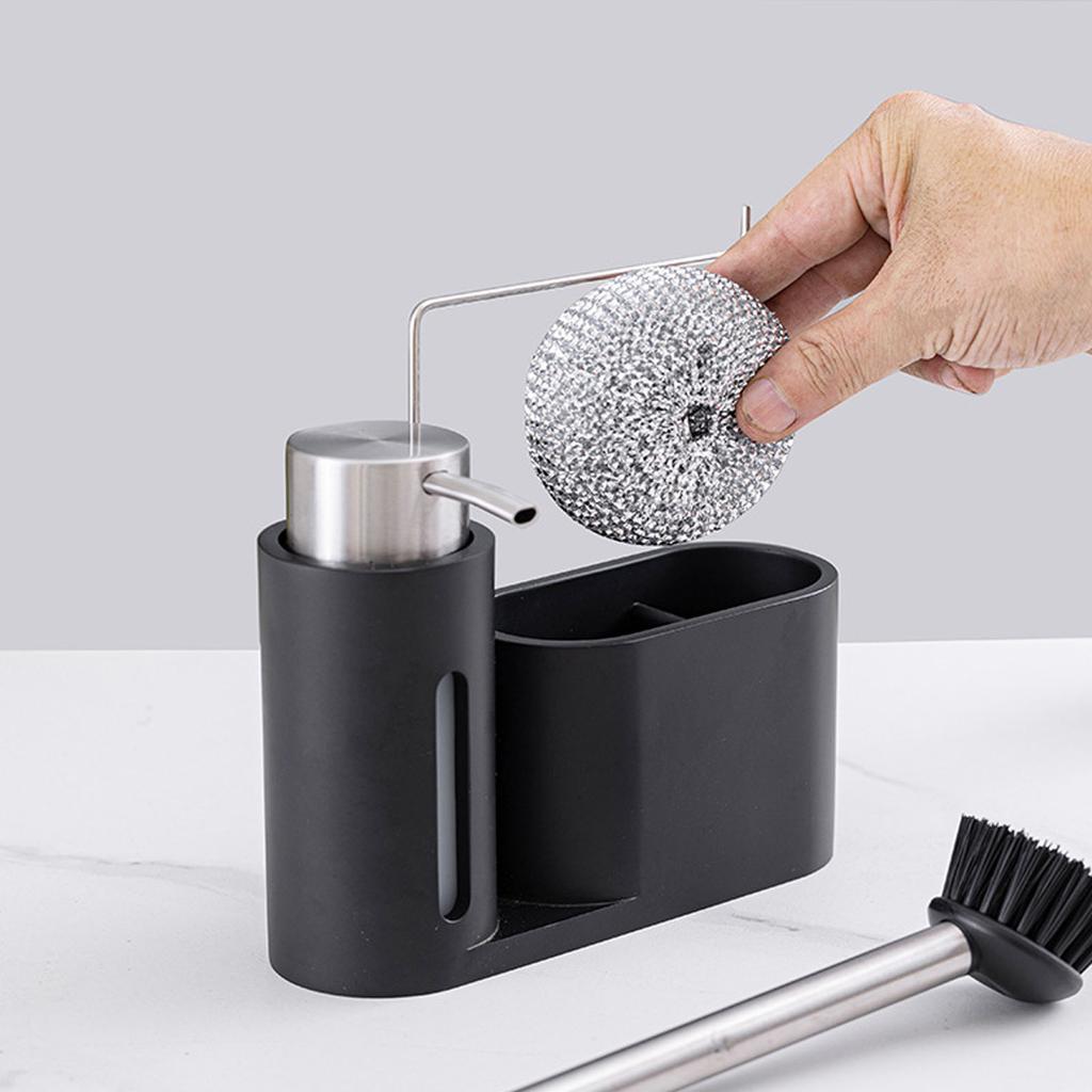 Диспенсер для мыла для посуды, набор из 3 шт., шариковая щетка для мытья посуды, полка для хранения кухонных принадлежностей для раковины, она