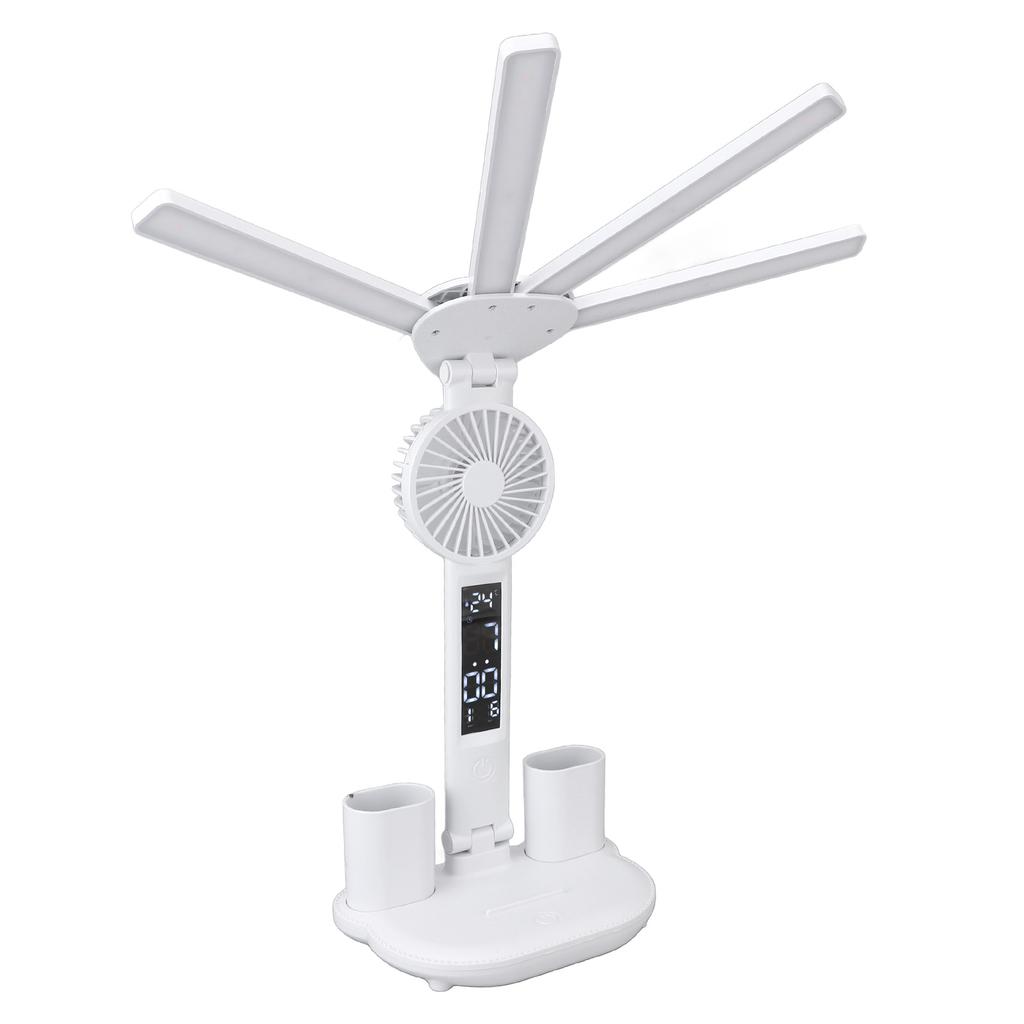 Светодиодная настольная лампа с вентилятором, яркая, 4-х головная, сенсорное управление, регулируемая складная настольная лампа с часами и датой