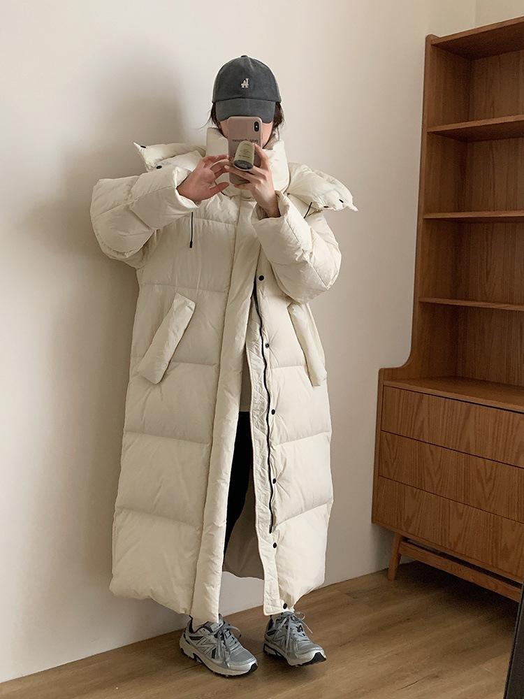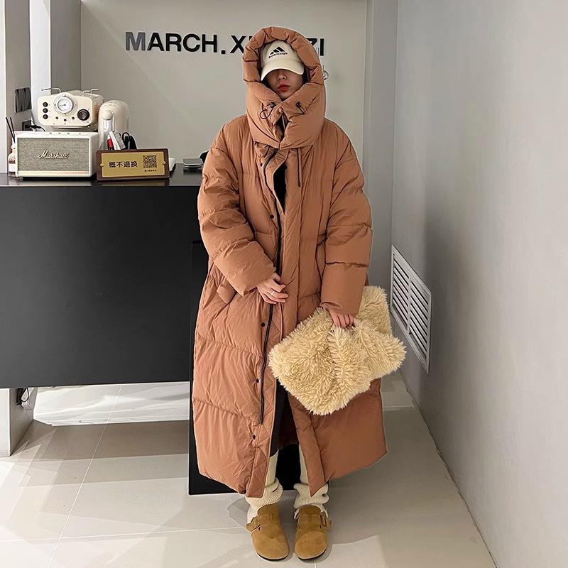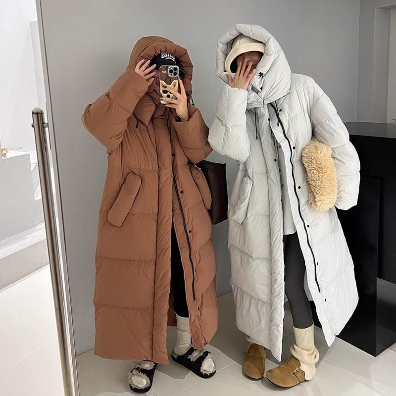 Супердлинная пуховая хлопковая утепленная одежда для женщин выше колена 2024 года, новая утолщенная большая стеганая зимняя куртка с капюшоном на хлопковой подкладке