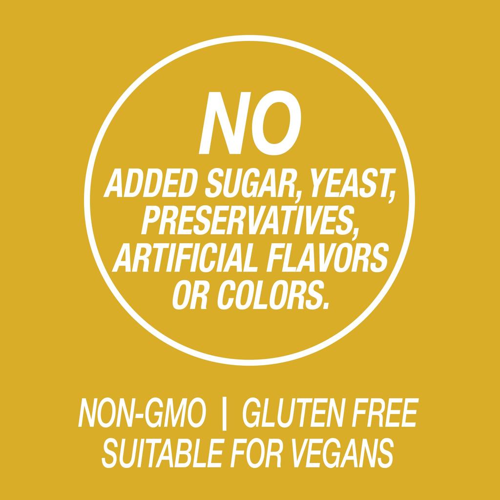 Ингредиенты: Целлюлоза, мальтодекстрин, кроскармеллоза натрия, стеариновая кислота. Содержит менее 2%: стеарат магния, диоксид кремния. Не содержит: Добавленные сахара, дрожжи, консерванты, искусственные ароматизаторы или красители.