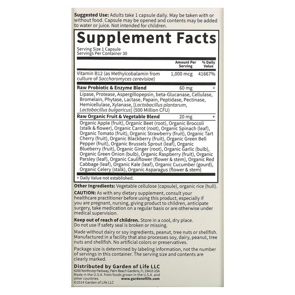 Описание товара: Сырая, натуральная пищевая добавкаЖивые пробиотики и ферменты23 вида фруктов и овощей, выращенных органическим способомБез связующих веществ и наполнителей1000 мкг натуральной пищевой B12 МетилкобаламинУмственная и физическая энергияСертифицировано проектом без ГМОСертифицировано NSF как не содержащее глютенКошерная добавкаВеганская сертификацияB corp. Сертифицированный необработанный означает: Не обрабатывается при высоких температурах и не содержит искусственных синтетических агентов, наполнителей, искусственных ароматизаторов, подсластителей, красителей или других добавок, обычно используемых при производстве таблеток.. Сертифицировано как не содержащее ГМО Независимая третья сторона Самосертифицировано.Сертифицировано как веганское Сертифицировано третьей стороной Vegan Action.B-Corp Некоммерческая организация B Lab сертифицирована на соответствие строгим стандартам социальной и экологической деятельности, ответственности и прозрачности.Vitamin Code® RAW B12™ — это натуральный пищевой нутриент, специально разработанный для обеспечения 1000 мкг витамина B12 и 41 667% вашей дневной нормы в форме активного метилкобаламина. 23 порошка органически выращенных фруктов и овощей, богатых антиоксидантами, витаминами и питательными кофакторами. Добавляет умственную и физическую энергию. Поддерживает анемию*. Здоровый метаболизм. Живые пробиотики и ферменты поддерживают здоровое пищеварение**. Дефицит B12. Может привести к мегалобластной анемии или пернициозной анемии. Исследование 2000 года, спонсированное Министерством сельского хозяйства США, показало, что дефицит B12 в американском обществе растет.