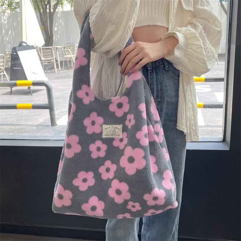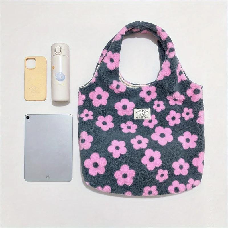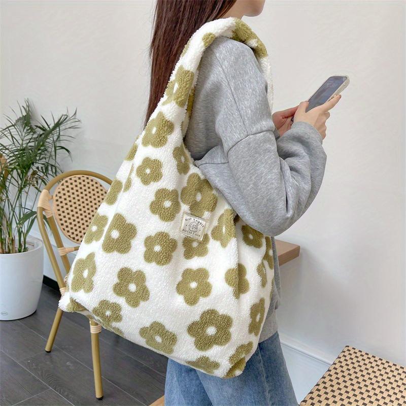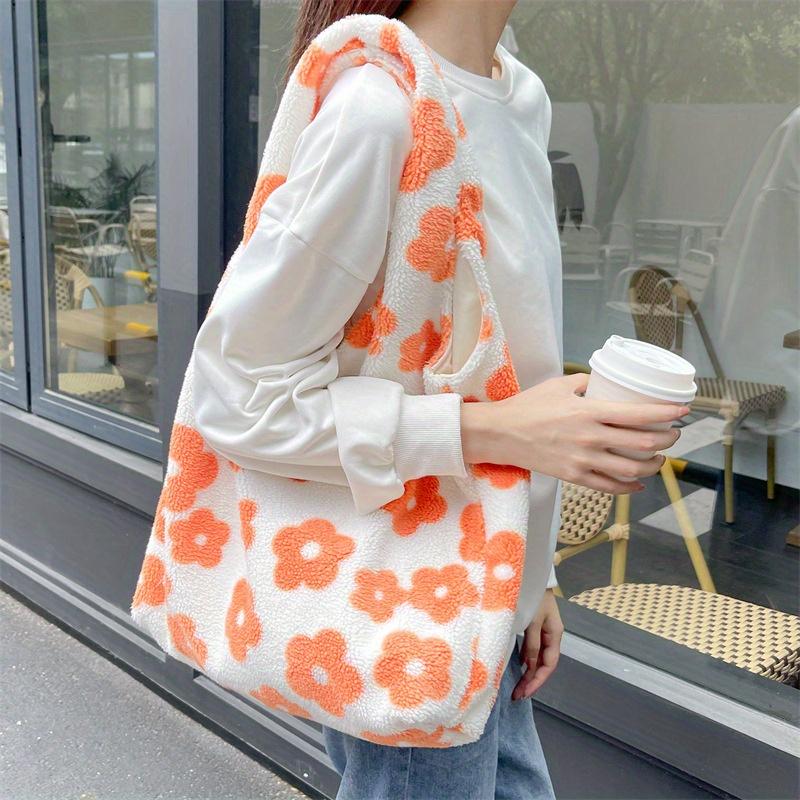 Пушистая сумка-тоут, мягкая, стильная и вместительная сумка через плечо для женщин, модный цветочный узор
