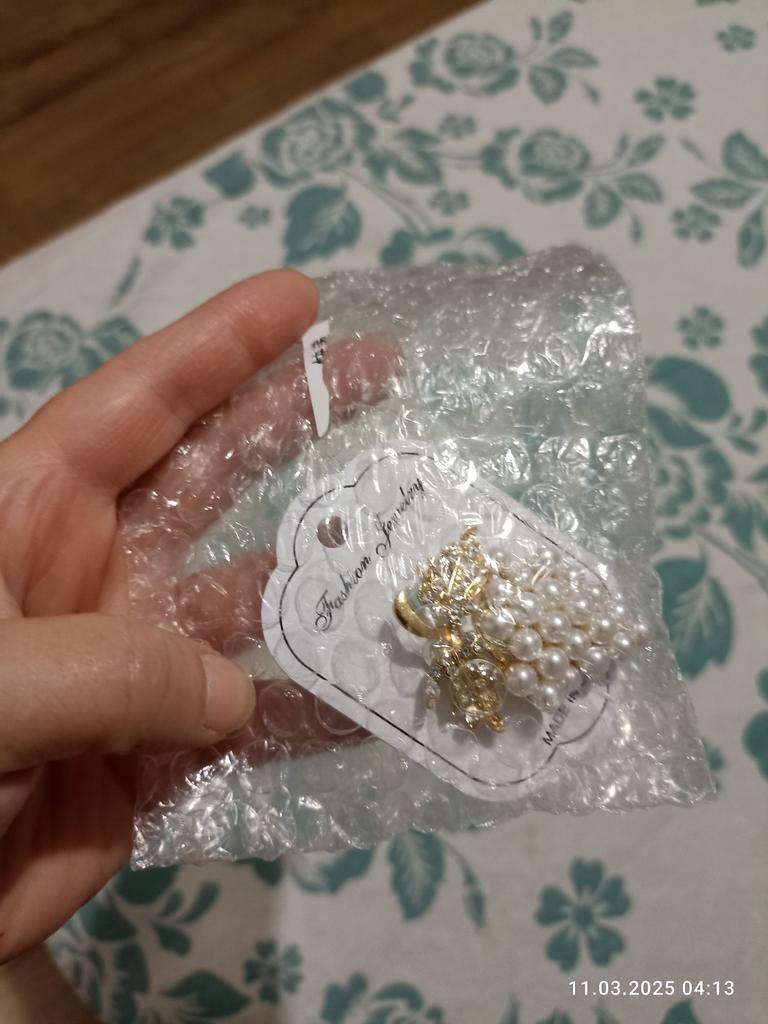 Я даже и не знаю какую оценку ставить😆как брошь норм, но как кольца 6 штук..... Их просто не прислали😁Кто хочет взять именно кольца для салфеток, не берите. Придёт 100% брошь. Я не поверила отзывам, ну думаю, мне точно придут кольца. Но, не тут то было.... Брошь, среднего качества.