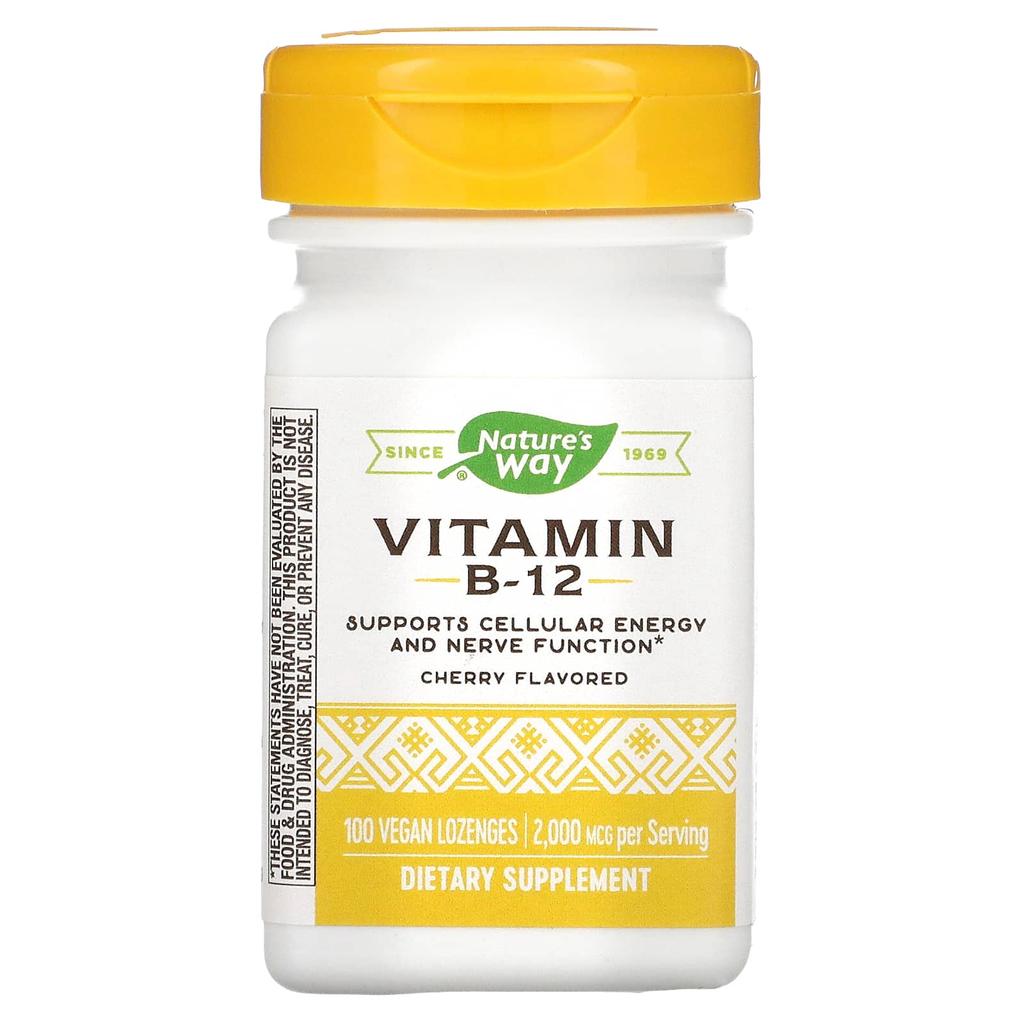 Nature's Way, Витамин B-12, Вишневый вкус, 2000 мкг, 100 веганских жевательных таблеток