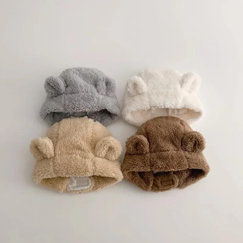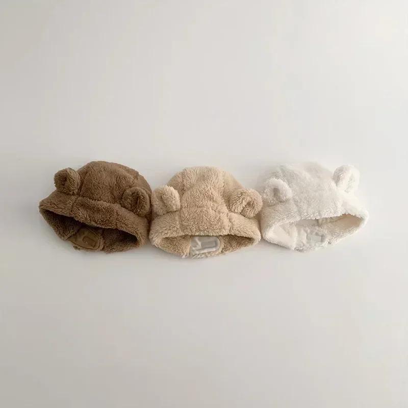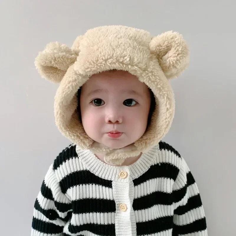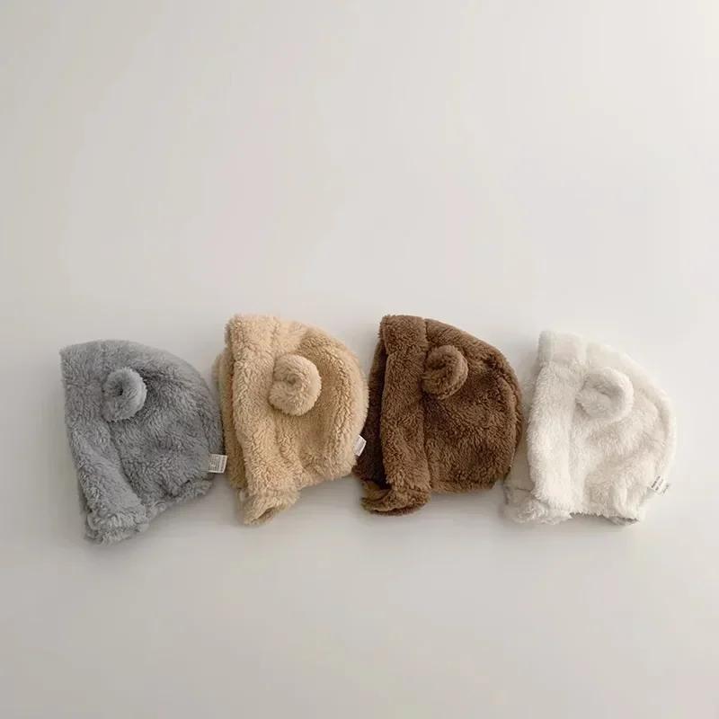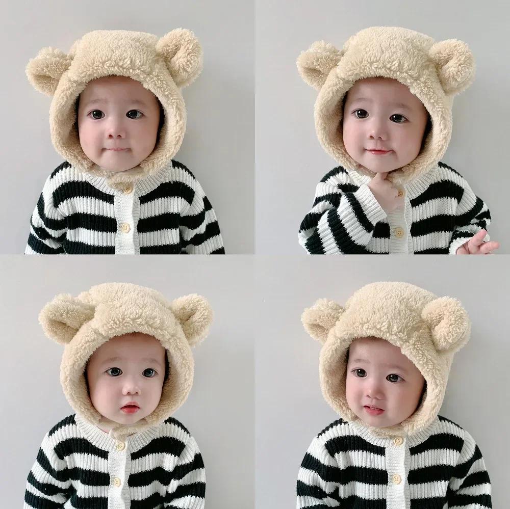 Осенне-зимние теплые шапки, зимняя теплая шапочка для новорожденных, милая плюшевая шапка с медвежьими ушками для малышей, мальчиков и девочек, модная термошапка для малышей, милая