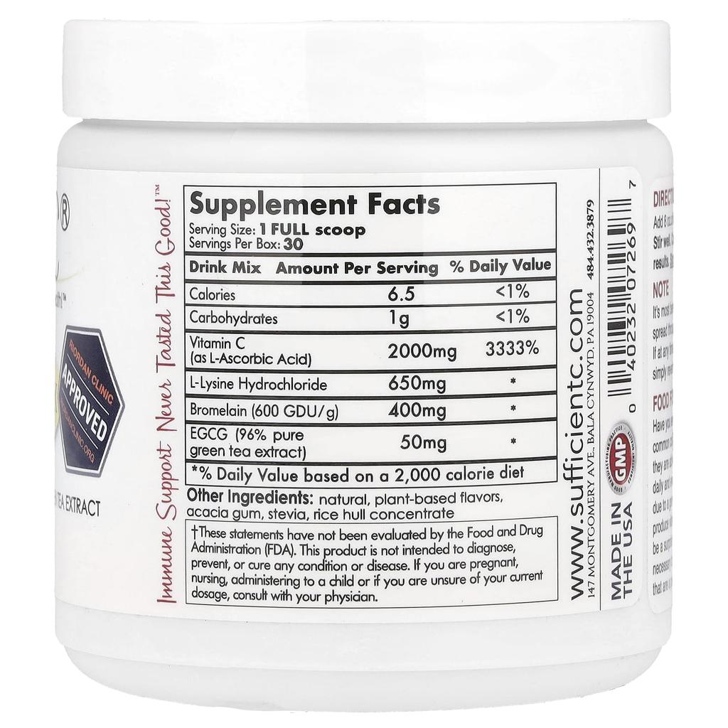 Sufficient C, High-Dose Immunade Drink Mix, Lemon Peach, 4,000mg, 125g