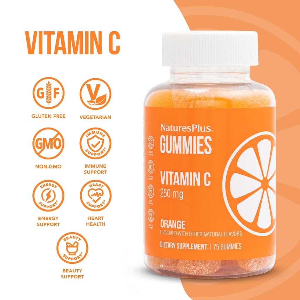 NaturesPlus, жевательные мармеладки с витамином C, апельсин, 250 мг, 75 мармеладок (125 мг на жевательную резинку)