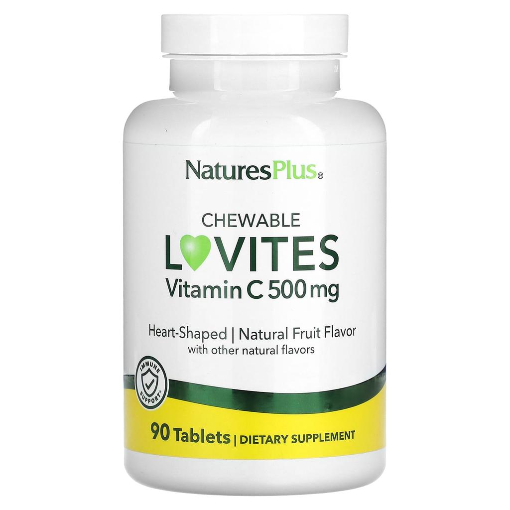 NaturesPlus, chewable Lovites, vitamin C, natural fruit, 500mg, 90 tablets