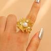 Модное преувеличение универсальное искусственное жемчужное кольцо из нержавеющей стали с цветком для женщин