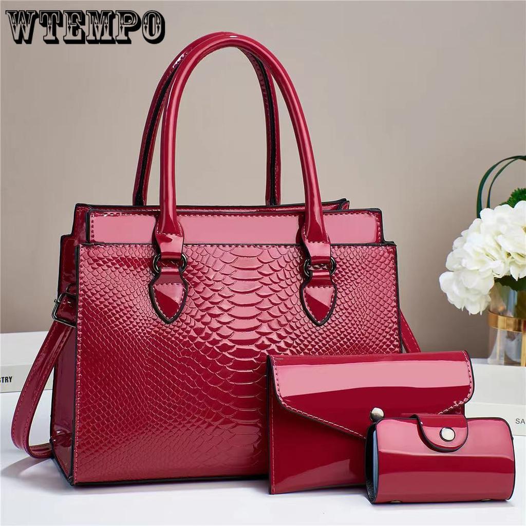WTEMPO Женские сумки из трех частей класса люкс, однотонные, большой емкости, наплечные сумки, универсальные, простые, с пряжкой, сумки через плечо