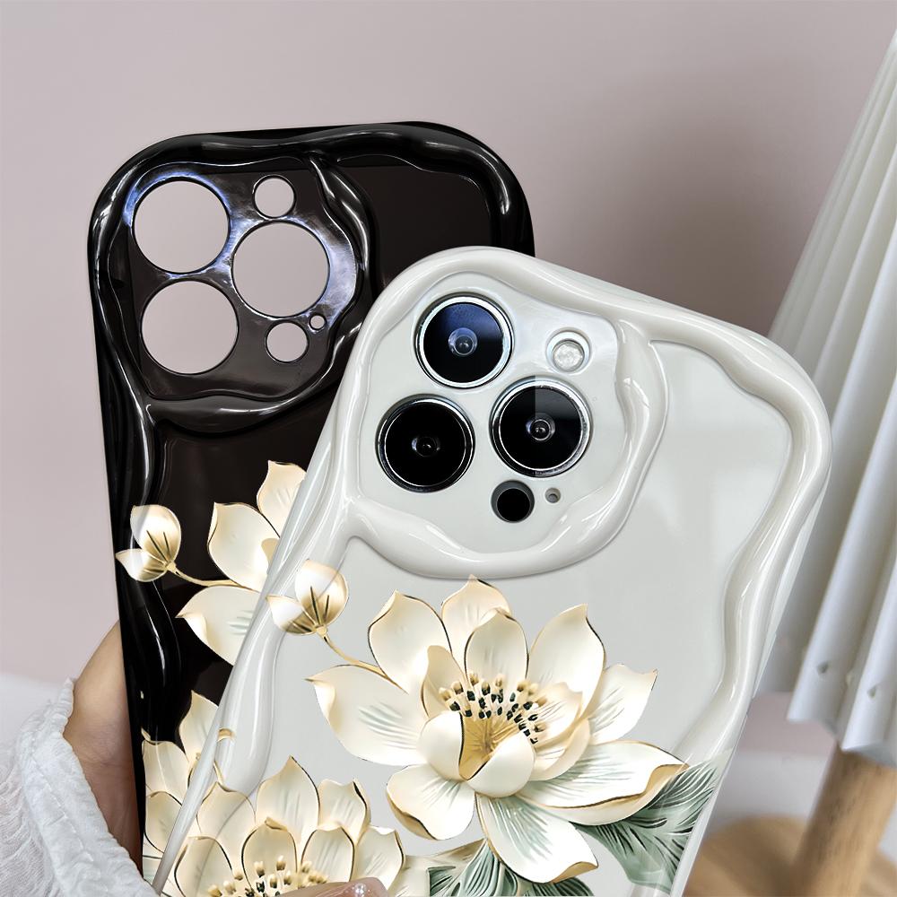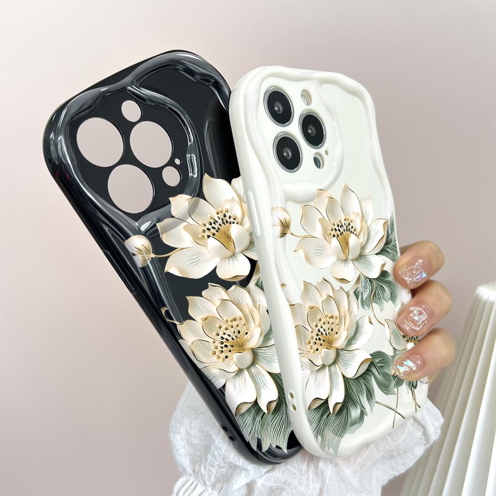 Для iPhone 16 15 14 13 12 Samsung S24 S23 S22 A06 A13 A14 A15 A16 A55 Redmi Note 13 12 Красивый цветочный дизайн Мягкий силиконовый чехол для телефона Wave Edge