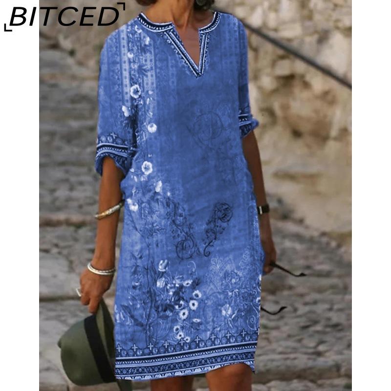 BITCED Женская мода лето весна цветочный принт повседневные платья 2/1 рукав V-образный вырез — купить товар онлайн с бесплатной доставкой по всему миру!