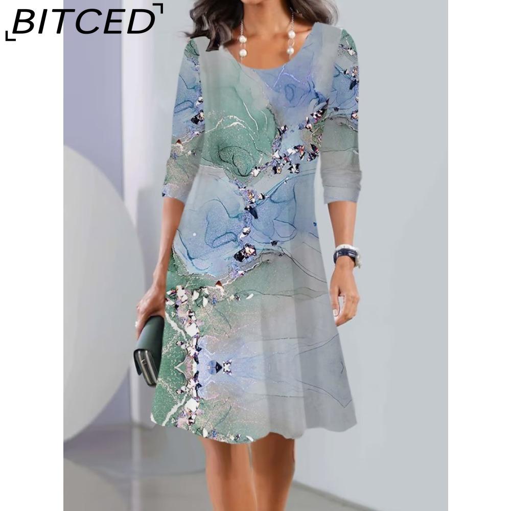 BITCED Женская мода осень-зима цветочный принт длинный рукав О-образный вырез повседневные платья — купить товар онлайн с бесплатной доставкой по всему миру!