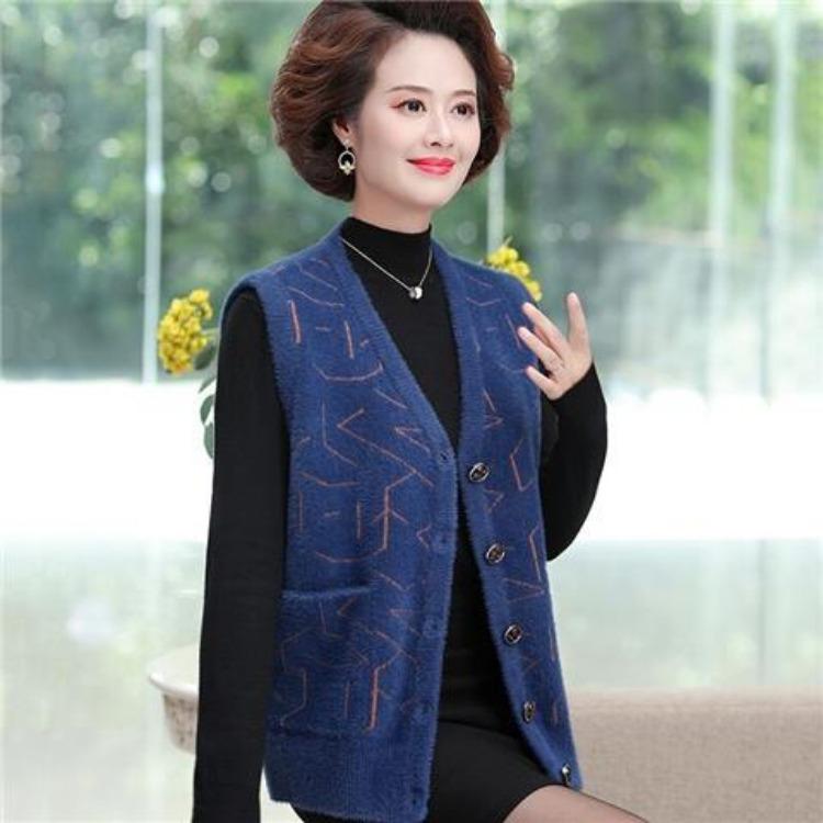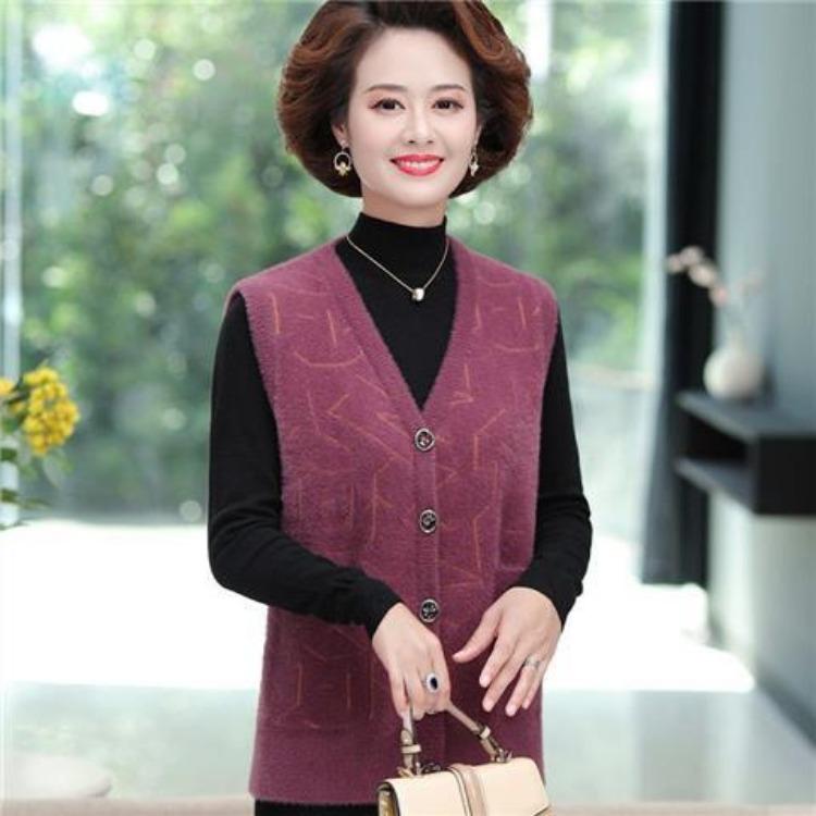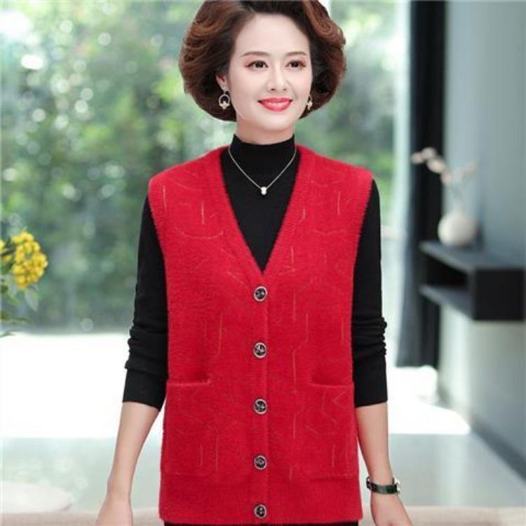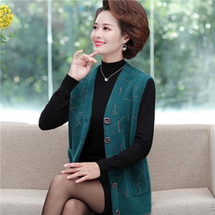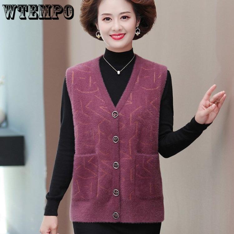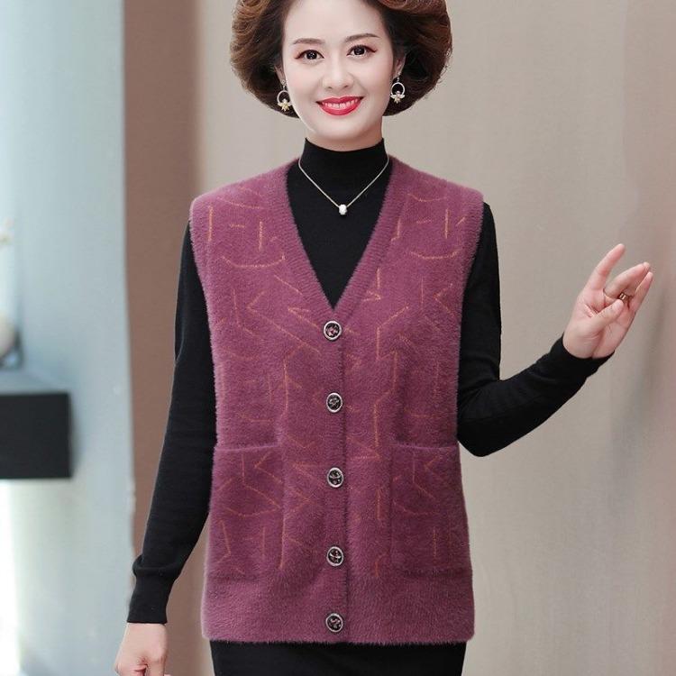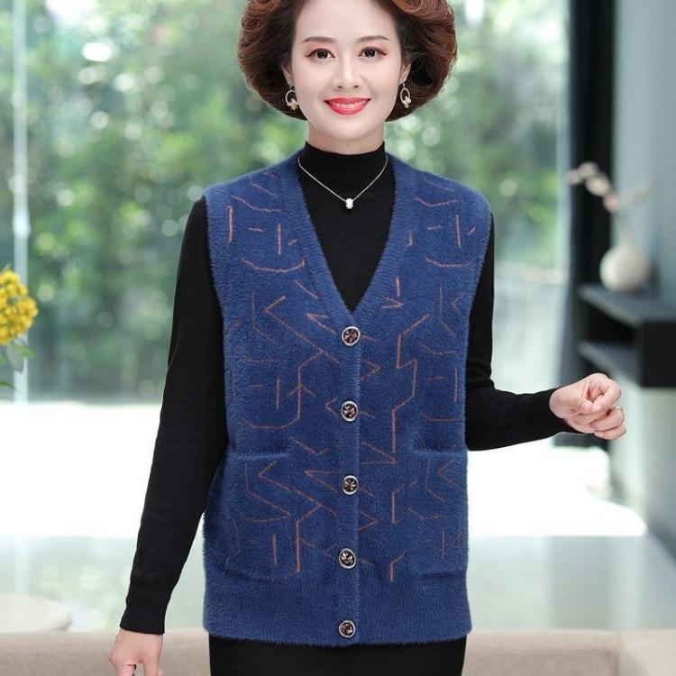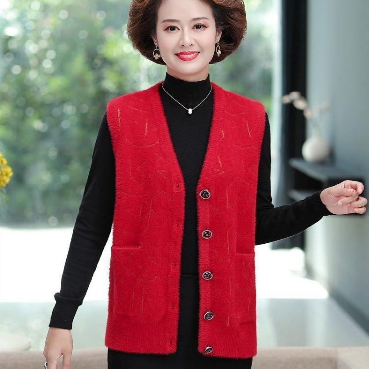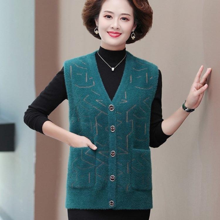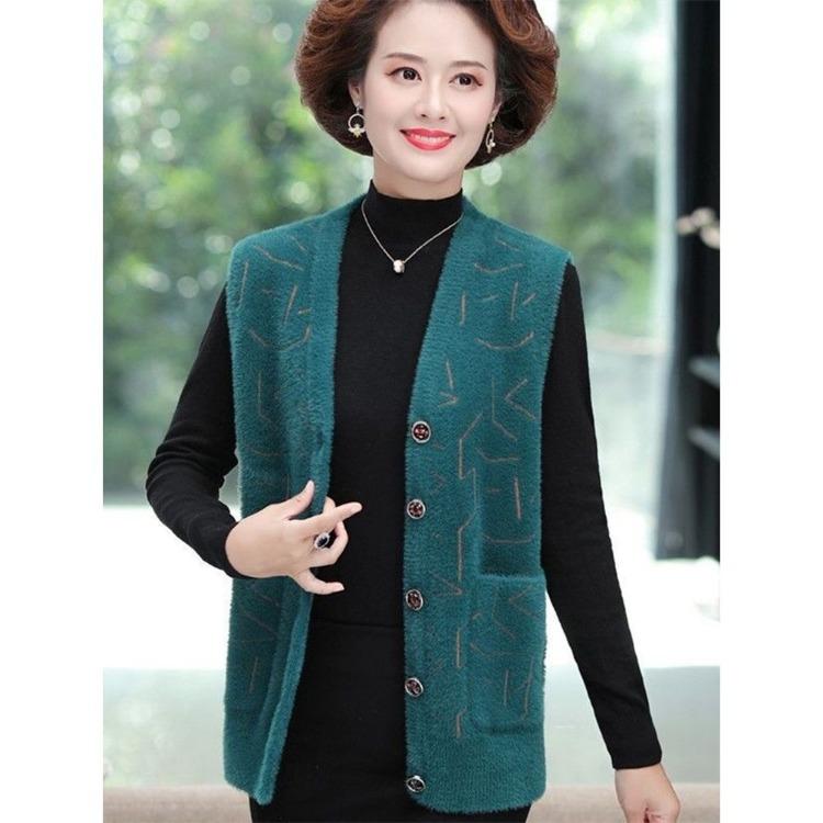 Вязаный жилет, осенне-зимний жилет, куртка для женщин, среднего и пожилого возраста, матерей, толстый свитер, жилет