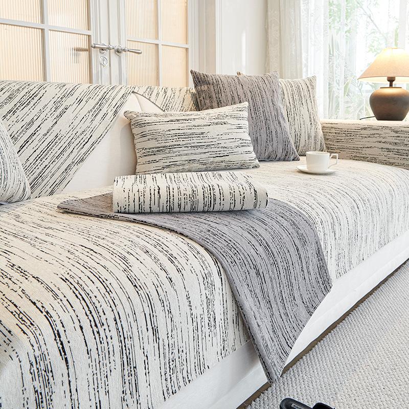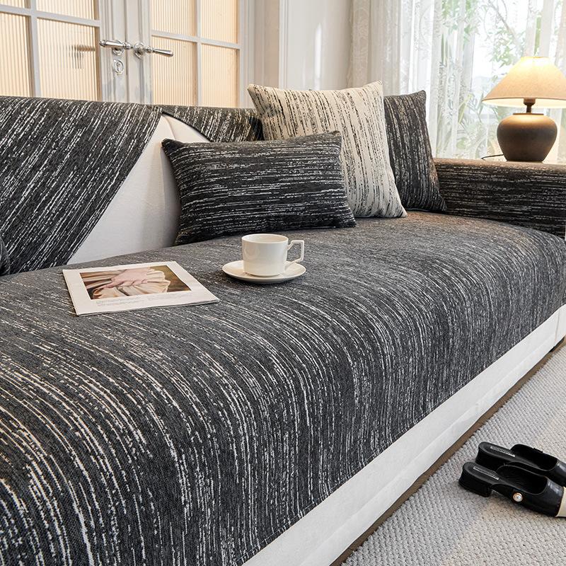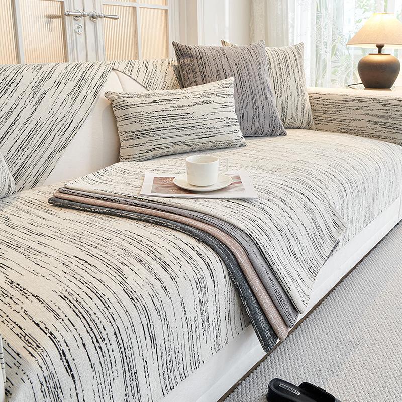 Чехол для дивана из синели, универсальный чехол для дивана на четыре сезона, однотонный полосатый коврик для дивана для гостиной, нескользящая L-образная подушка для дивана